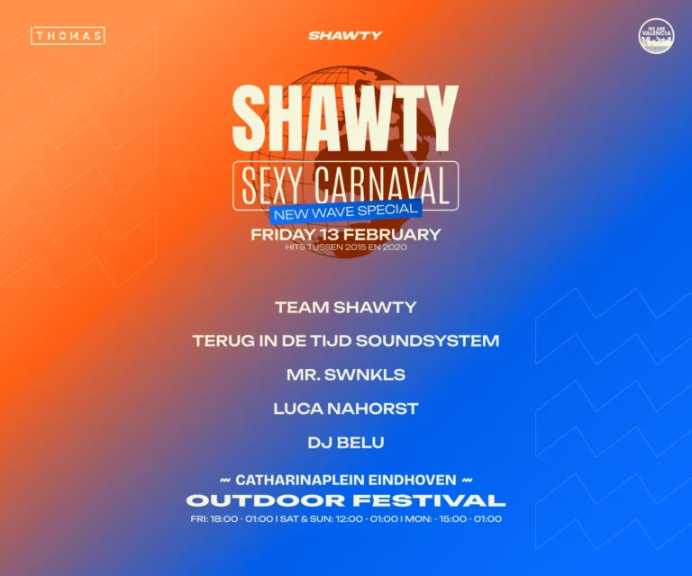 This day is all about love! With top DJs like NIEUW BLOED, Miss Nijhof, Team Shawty, and Thornballin’, you’ll hear the smoothest R&B and urban hits from then and now. Expect those signature SHAWTY sounds during CARNAVAL — free entry!